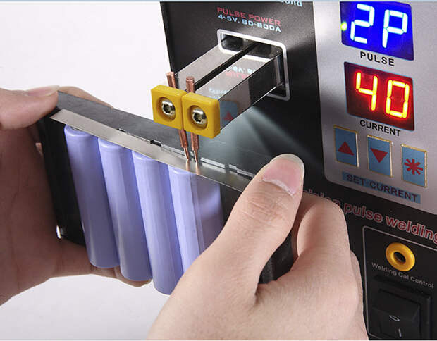 Инструмент предназначен для точечной сварки, например, для сварки литиевых элементов в батареи при ремонте и модернизации шуруповертов. Прибор способен обеспечивать надежную сварку ленточных проводников толщиной 0,2 мм. Сила тока и длина импульса регулируются. Максимальная сила тока заявлена в 500А. Размеры аппарата для сварки 140 х 245 х 200 мм при весе 5,5 кг.