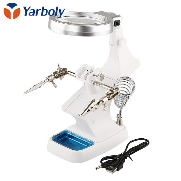 Удобный и практичный инструмент для фиксации объектов при пайке с лупой на 3 и 4,5-кратное увеличение и светодиодной подсветкой.