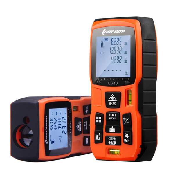 Способен проводить измерения в дюймах, футах и метрах. Может вычислять площадь помещения. Сохраняет до 20 измерений. Питается от двух ААА–батареек. Доступны несколько версий прибора с разными максимальными расстояниями — от 40 до 120 метров.
