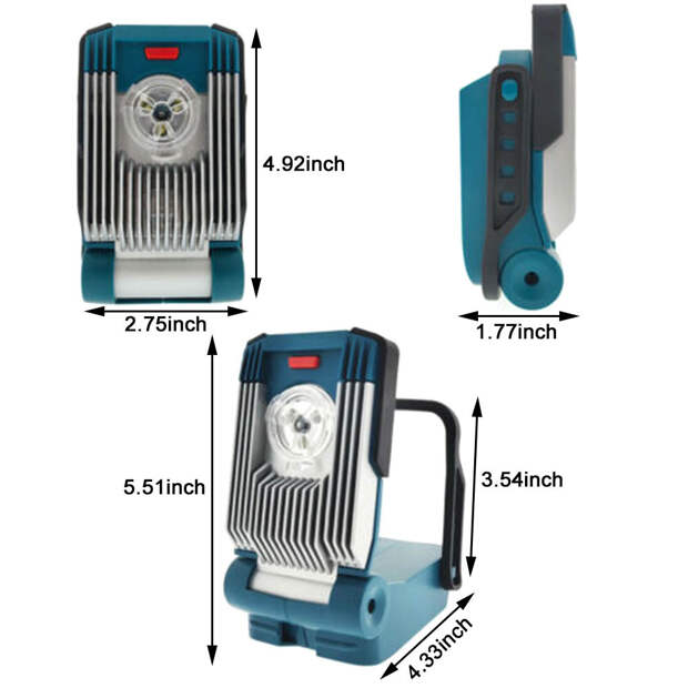 Мощный фонарь, который может питаться от 14.4В или 18/20В аккумуляторов, предназначенных для инструмента Makita. Фонарь выдает до 420Lm, наклон регулируется в пределах 0-135 градусов.