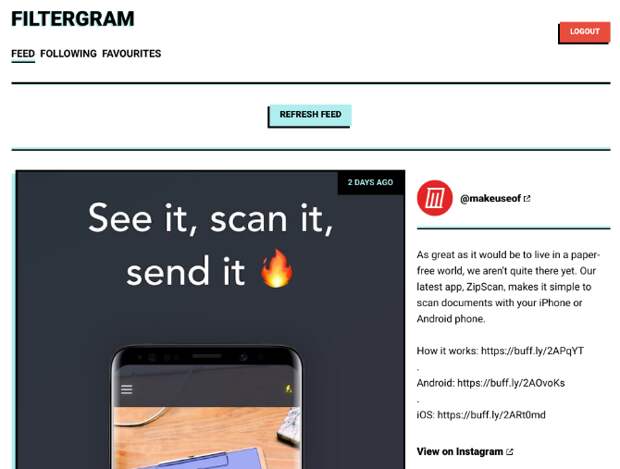 Как и любая другая крупная социальная сеть, Instagram — это кошмар для частной жизни. Он использует изощренные способы шпионить за вами, постоянно собирая данные о пользователях. Filtergram — это простой способ использования Instagram без аккаунта и идеальное приложение для пассивных пользователей и тайных агентов, которые просто хотят следить за определенными учетными записями, сохраняя при этом конфиденциальность.