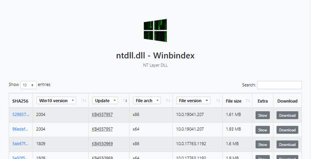 Автор сервиса проиндексировал все файлы Windows, которые появляются в пакетах обновления операционной системы, и создал сайт, который позволяет быстро просмотреть информацию о них и скачать с серверов Microsoft.